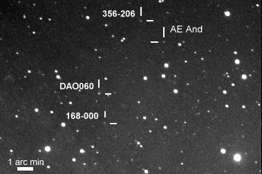 | NGC 6027 / Hickson 79 (Serpens Cauda) comprising NGC 6067 (catalog mag+14.5), NGC 6067A (+14.9), NGC 6067B (+15.3), NGC 6067C (+16.0), NGC 6067D (+15.6). Bright non-stellar object (+12.4) at position of NGC 6067E (+16.5) |