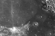 | 2002-03-02 02:13h UT CCD Image, 0.1 sec exposure, (#18518) 8"/f10 SCT with Barlow CCD Image showing location of Apollo 17 Landing site in the Taurus-Littrow Valley. This lies in the Taurus Range, which forms the south-eastern rim of the Serenitatis Basin. (Zoomed in view) |