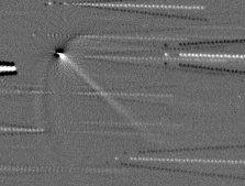 | CCD Image (75% size) 36 x 30s, 1x1 binning, C Filter Aligned on comet nucleus & stacked, Linear Scale 2006-05-09 00:55h UT (#123201-37) |